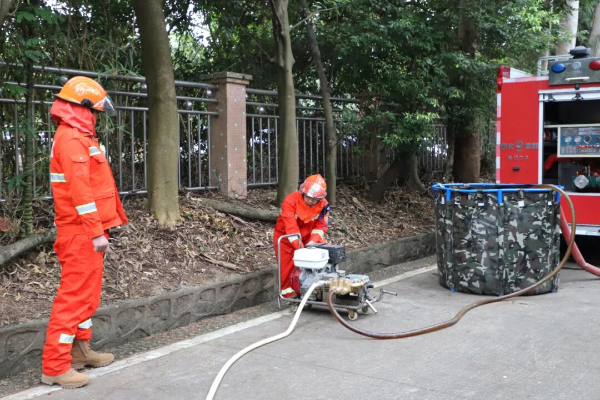 演练真实开端前,大岭山森林公园救活队负责人结合实战场景,具体讲解了高压水泵、便携式水泵、油电锯、风力救活机等常用消防器械的功用特性与标准操作方法,保证参演人员熟练掌握配备运用技术,为演练顺利展开奠定根底。