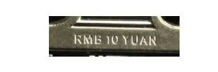 在硬币正面面额数字“10”的底端,可调查到“RMB 10 YUAN”的微缩文字。防伪特征作用见图4。