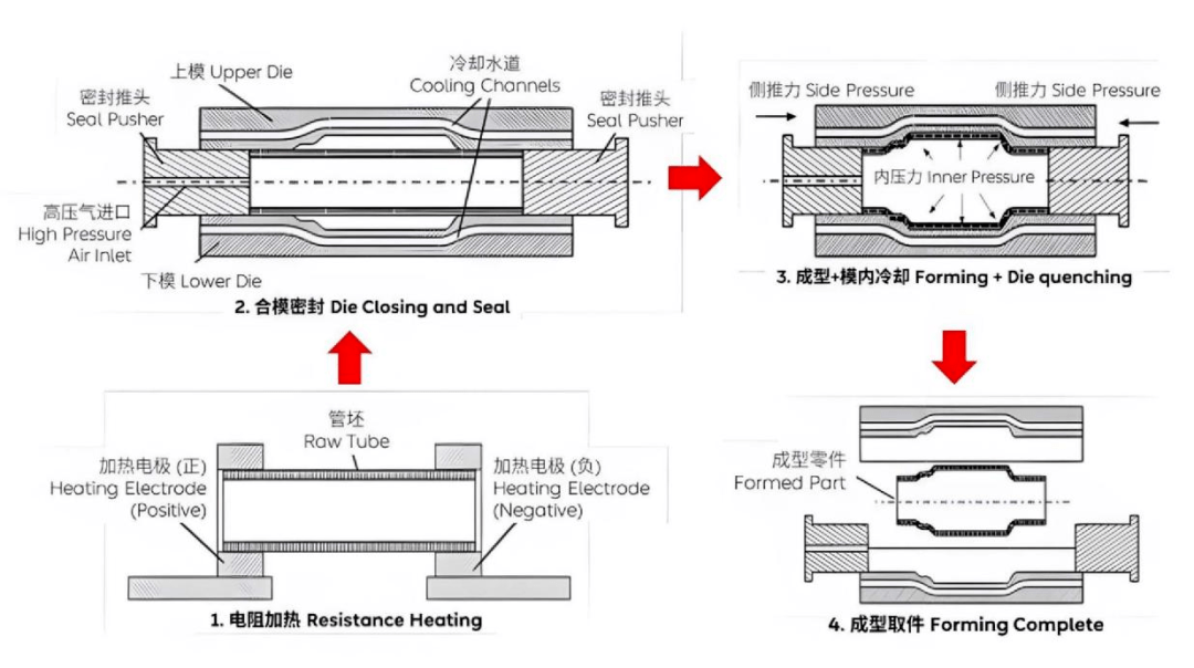 基于上述行业现状,我司拟投项目HY公司凭借其全面自主可控的特种工艺装备和高性能结构系统解决方案,在2023年9月20~22日召开的“2023国际汽车轻量化大会”现场全面推出“超高强车身管梁热气胀成形技术”,该技术优势主要有: