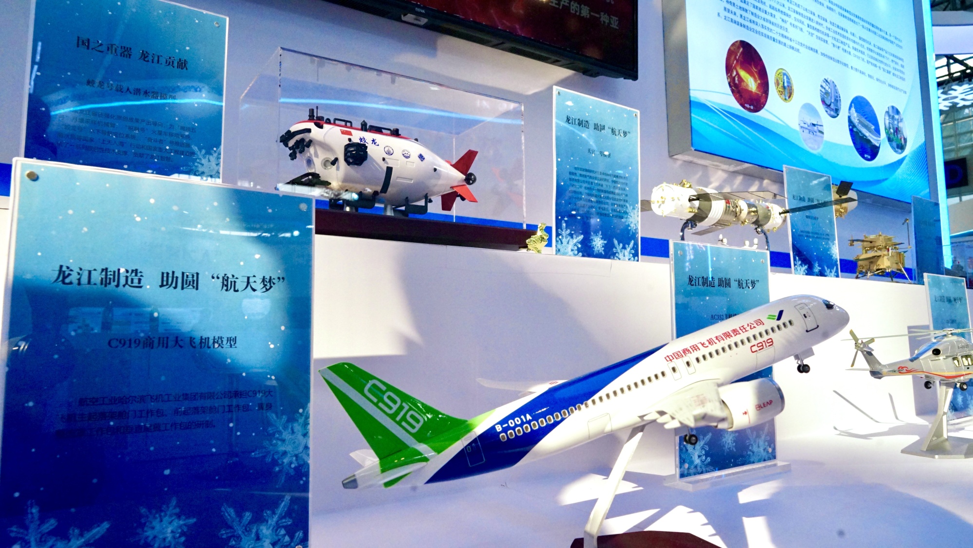 此次黑龙江展区共有六块展板进行展示,经过“大国重器、龙江制造”首要展示C919大飞机、嫦娥二号、天宫二号、山东舰航空母舰、蛟龙号潜器等大国重器中包含的龙江制造要素,“新一代的龙江人,把大国重器的制造开展担在肩上、放在心里。”孟韦宇说。