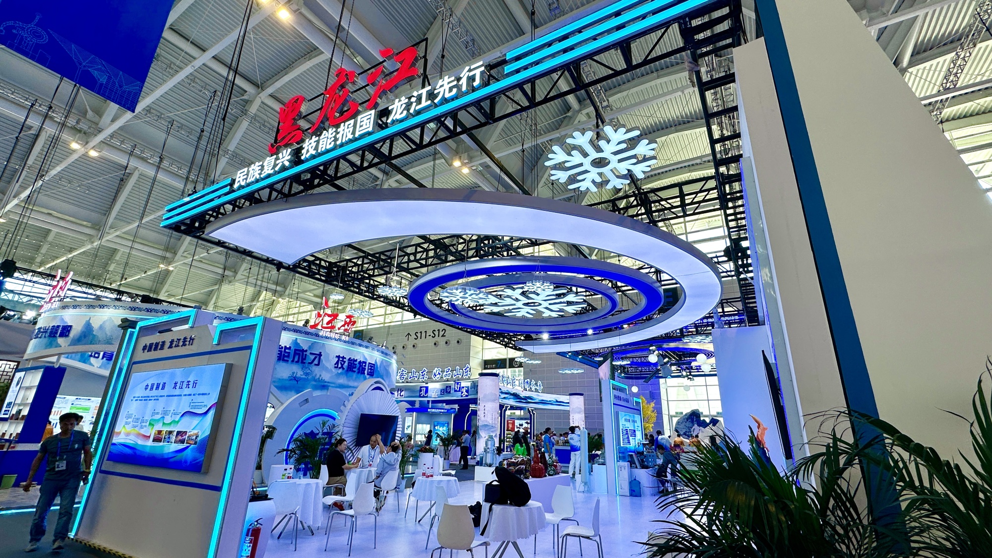 在本次大赛的技术展示沟通展馆,黑龙江展区以“冰雪”为主体元素,经过“天寒地冻也是金山银山”宗旨理念,更优、更全地展示黑龙江的地域文明特征和工业开展变化。