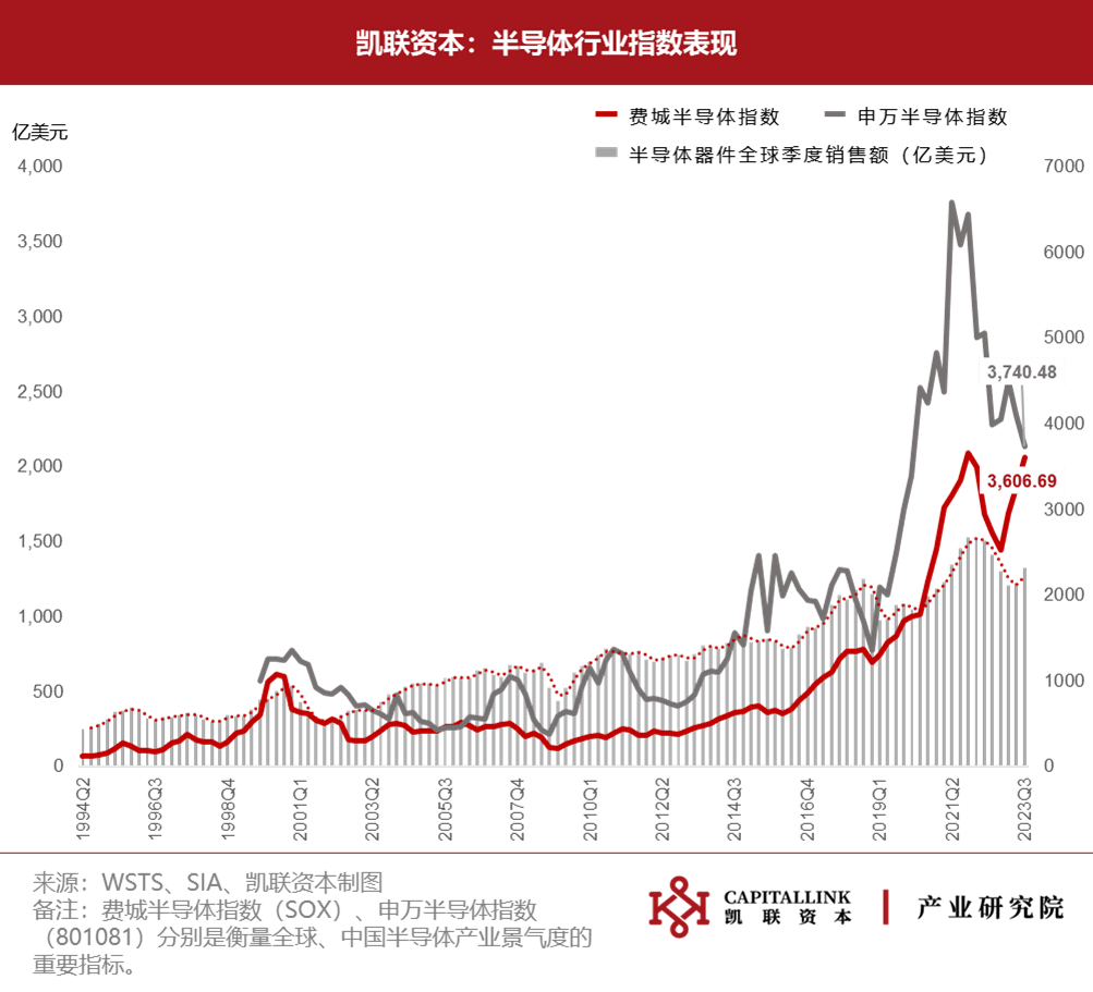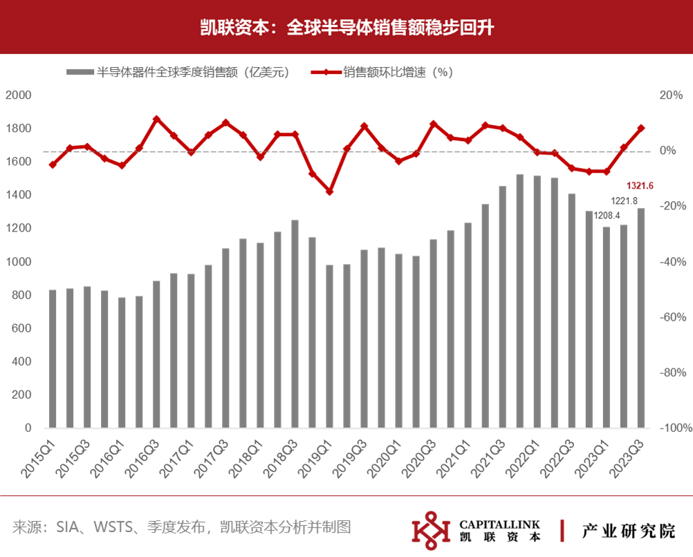 凯联资本长期关注全球半导体产业高质量发展。结合当下不稳定的全球半导体产业环境和诡谲多变的政治政策,凯联资本产业研究院将持续追踪半导体有关政策及产业链格局变化,以动态视角和多维观点分享自身研究成果,本期是对截至2023年Q3国内外半导体产业最新数据动态综述报告。
