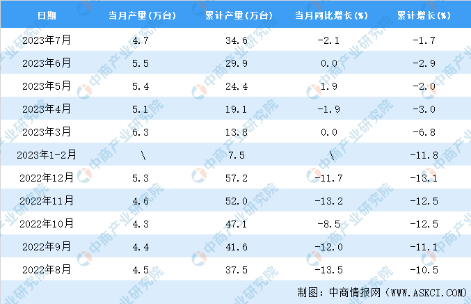 中商情报网讯:据中商工业研究院数据库显现,2023年7月全国金属切削机床当月产值与去年同期下降。2023年7月全国金属切削机床产值为4.7万台,同比下降2.1%。2023年1-7月全国金属切削机床产值为34.6万台,同比下降1.7%。