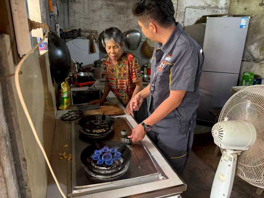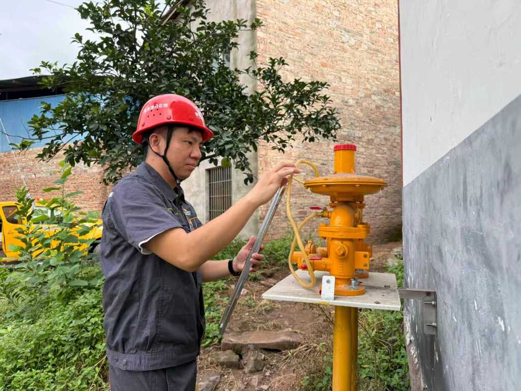 在皂桷树村,石磊(陈家桥客户服务中心维修组长)带领的维修组主动上门,为村民办理通气手续,耐心调试,确保每家每户都能顺利点火。他们还把安全知识带到家中,讲解如何正确用气、怎么自查隐患、遇上问题该如何正确地处理,让大家不仅“能用上”,更“能用好”、用得踏实。